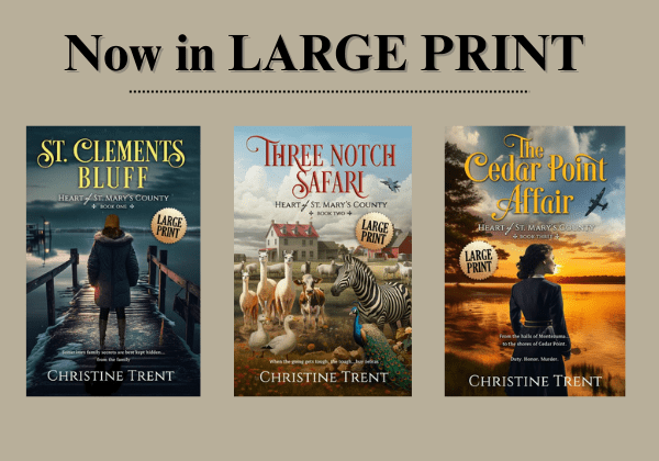 Did you know that many of my titles are available in large print? The books in both my Royal Trades and the Heart of St. Mary’s County series are all available in large print at Amazon, Barnes & Noble, or your other favorite retail outlet. I’m getting others added as fast as I can.